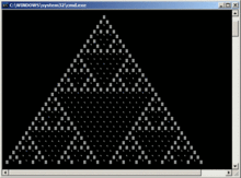 In order for the program, often of great complexity, which would usually be represented with many lines of code, to fit into a single line, many compression techniques are used. The following program prints out an ASCII art version of the Sierpinski triangle fractal, shown in the illustration: