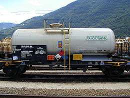 - Tank car of trichlorosilane (the blue diamond means "Dangerous when wet").