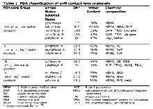 Soft contact lenses are one of several types on the U.S. Market approved by the U.S. Food and Drug Administration[1] for corrective vision eyewear as prescribed by optometrists and ophthamologists.[2] The American Optometric Association published a contact lens comparison chart called Advantages and Disadvantages of Various Types of Contact Lenses on the differences between them.[3] These include: