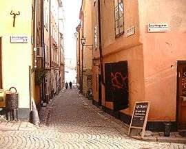 - ↑ "Innerstaden: Gamla stan". Stockholms gatunamn (2nd ed.). Stockholm: Kommittén för Stockholmsforskning. 1992. p. 68. ISBN 91-7031-042-4.