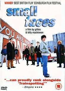Small Faces (1996) is a Scottish film directed by Gillies MacKinnon about gangs, specifically the Tongs, in 1960s Glasgow. It stars Iain Robertson, Joseph McFadden, Steven Duffy, Kevin McKidd, Laura Fraser, Mark McConnochie, Clare Higgins, Garry Sweeney, Colin McCredie and Alastair Galbraith.
