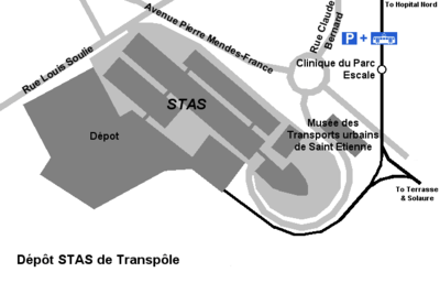 Société de Transports de l'Agglomération Stéphanoise, or STAS operates a public transport network and infrastructure in and around Saint-Étienne. Its responsibility is to provide tramway, trolleybus and bus service in the fifteen communes of the Saint-Étienne agglomeration: