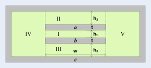 If w >> h1, h2 >> t, then the field in region IV and V and can be ignored.