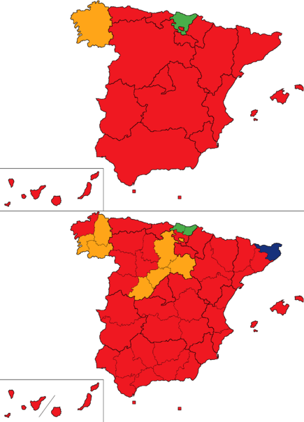 | Most voted party by autonomous community and province.