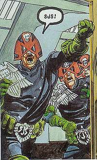The SJS is despised by other Judges due to their extreme methods, which include random searches and the torture of Judges during interrogations.[1] While Dredd has clashed with Squad over their methods, he has considered them a useful branch and in 2080 they tried to recruit him.[2]