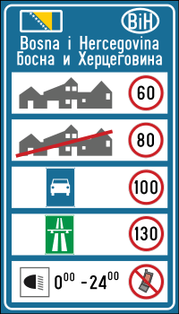 Four general speed limits apply on roads in Bosnia and Herzegovina: