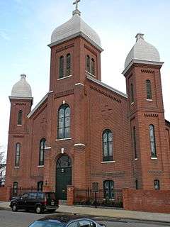 St. Mary of the Immaculate Conception is a historic Roman Catholic church located at 6th and Pine Streets in Wilmington, New Castle County, Delaware. It was built in 1858 and is a brick church building trimmed in limestone and measuring about 100 feet long and 60 feet wide. The front facade features three brick towers; two corner ones are set diagonally, with onion-shaped domes topped with crosses and the center square tower (built 1881), now used as a belfry, has arched louvred openings. The dome on the center tower replaced an original wooden belfry and smaller dome destroyed by fire in March 1966. A parochial Catholic school, St. Mary's, was built on the adjacent property in 1866. St. Mary's is the only church in Delaware associated with Saint John Neumann, Bishop of Philadelphia 1852-1860, who consecrated it in 1859. The church and school were the principal institution for the education and integration of thousands of Irish immigrants in Wilmington, most of whom lived in the parish upon first arriving.[2]