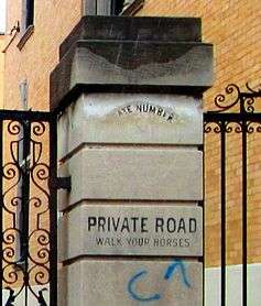 The houses sit back-to-back, which allowed King to specify that they would share rear courtyards. The alleyways between them a rarity in Manhattan[2] are gated off; some entrance gates still have signs that read "Walk Your Horses". At one time, these alleys allowed discreet stabling of horses and delivery of supplies without disrupting activities in the main houses. Today, the back areas are used almost exclusively for parking.