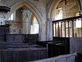 There are also parclose screens between the Carolean-style box pews that date from the Commonwealth era[28] and a hanging pyx.[17] The font is from the 15th century while the Jacobean pulpit and tester are from around 1630.[1][20] There is a Tournai marble slab with a knight in the chancel which dates from around 1300.[1] The piscina is from the 13th century with a trefoiled head, a shelf and a circular basin.[20]