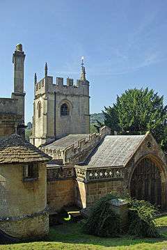 The church was built between 1490 and 1498 by John Cantlow, Prior of Bath Abbey and took the place of an older Norman church.[2] However, there was a common tradition that a weaver was the founder of the church, and an escutcheon bearing a weaver's shuttle can be seen[nb 1] on the outside of one of the north battlements of the tower.[3] It is believed that there was originally a Saxon chapel on the site. The church was commonly called Old Widcombe Church and used to be the principal church of the parishes of Widcombe and Lyncombe. The Domesday survey of 1086 shows a small settlement around the church although no trace of it remains.[4]