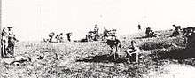 During the stalemate, EFF mounted patrols, outpost work, and reconnaissances were conducted, mainly towards Hareira and Beersheba.[10] These patrols and reconnaissances, by forces up to the size of a brigade, took place day and night, when skirmishes and surprise attacks were launched, traps set for hostile patrols, and raids were made on the lines of communication.[85][86] Mounted patrols were frequently attacked by Ottoman cavalry. From the height of Tel el Fara, these attacks could be seen and the shots heard, across the open country. The area was renamed "the racecourse."[6]