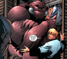 Years later, it is revealed that other arcane forces have played into the monster's arrival on Earth (Though it should be noted that events of this telling of the story fundamentally invalidate any earlier versions, to the extent that tying them together becomes impossible). The monster had accidentally been bonded to Stanley by Stanley's demon-worshiping grandfather, also named Stanley Dover; Dover Sr. had summoned the Beast in order to use it to grant him immortality, but he had been roped into babysitting his grandson at the time he performed the ritual and the bond was transferred to the infant instead. Discovering the bond, the grandfather locked the younger Stanley in a large glass container and torments him, both physically and by forcing him to witness horrific acts of murder, all in an attempt to bring back the monster. Eventually abandoning his original plans to search for the monster, Stanley Sr. decides to transfer his soul into Green Arrow- currently resurrected by Hal Jordan as an amnesic body with no soul after the Final Night- with the goal of gaining access to the Watchtower monitoring systems to find the Beast, but Green Arrow was able to make contact with his soul in Heaven and convince the soul to return, allowing him to fight through the demons that Dover Sr. had summoned until the monster appeared to seal the door to Hell. He subsequently ate Dover Sr., later erasing the youngster's horrible memories of the act and of his imprisonment and torture to spare him from the tormented life he would otherwise endure.[5]
