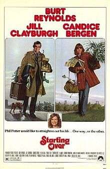 Starting Over is a 1979 American comedy film based on Dan Wakefield's novel, produced by James L. Brooks and directed by Alan J. Pakula. Starring Burt Reynolds, Jill Clayburgh and Candice Bergen, It follows a recently divorced man who is torn between his new girlfriend and his ex-wife.