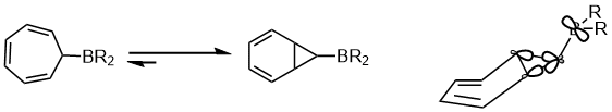 - ↑ Gridnev, Ilya D.; Tok, Oleg L.; Gridneva, Natalya A.; Bubnov, Yuri N.; Schreiner, Peter R. (1998). "Synthesis and Dynamic Properties of Cycloheptatrienyl(dipropyl)borane. Equilibrium with 7-Dipropylborylnorcaradiene". Journal of the American Chemical Society. 120 (5): 1034–1043. doi:10.1021/ja9724699. ISSN 0002-7863.