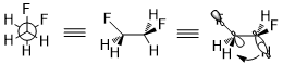 One structural consequence of acyclic systems due to the stereoelectronic effect is the gauche effect.[6] In 1,2-difluoroethane, despite the steric clash, the preferred conformation is the gauche one because σ(C–H) is a good donor and σ*(C–F) is a good acceptor and the stereoelectronic effect (σ(C–H) → σ*(C–F)) requires the energy minimum to be gauche instead of anti.[7]