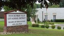 The Stow-Munroe Falls City School District (SMFCSD) is a public primary and secondary school district with administrative offices in Stow, Ohio. Located in eastern Summit County, the district serves more than 5,500 students[1] – primarily from the cities of Stow and Munroe Falls – but also from neighboring portions of Cuyahoga Falls, Franklin Township, Hudson and Tallmadge.[2] With a staff of more than 600,[3] SMFCSD operates eleven facilities: its own central office, a bus garage, six elementary schools, one intermediate school, one middle school and one high school.[4] Tom Bratten currently serves as superintendent.[1]