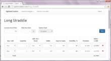 A long straddle involves "going long," in other words, purchasing both a call option and a put option on some stock, interest rate, index or other underlying. The two options are bought at the same strike price and expire at the same time. The owner of a long straddle makes a profit if the underlying price moves a long way from the strike price, either above or below. Thus, an investor may take a long straddle position if he thinks the market is highly volatile, but does not know in which direction it is going to move. This position is a limited risk, since the most a purchaser may lose is the cost of both options. At the same time, there is unlimited profit potential.[1]