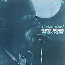 Straight Ahead is a jazz studio album by saxophonist Oliver Nelson. It features acclaimed musicians such as Eric Dolphy on sax, clarinet and flute (his last appearance on a Nelson album following a series of collaborations recorded for Prestige), and Roy Haynes on drums. It was recorded in March 1961 at the celebrated Van Gelder Studio in Englewood Cliffs. All the pieces were first takes; Joe Goldberg recalls: "The session was scheduled for one in the afternoon and I arrived at 3:30, thinking that by then the music would have been rehearsed and the men would be starting to play. What I found was a studio empty of everyone but A&R man Esmond Edwards", the supervisor, "and engineer Rudy Van Gelder, who were packing up to leave and looking very satisfied." Released in 1961 for the Prestige/New Jazz label (as NJ 8255) and remastered in 1989, the album is notable for its long and thoughtful horn duets by Dolphy and Nelson. Don DeMicheal described the album "All in all, a warm, very human record".[4]