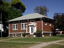 Stromsburg was settled early in Nebraska history. A group of Swedish settlers coming from the town of Ockelbo arrived in the 1860s after several years in Illinois. This group had a leader named Lewis Headstrom, who was a real estate agent. Seeing some similarities to their old Swedish homeland the settlers formed what would be called Stromsburg, named after a section of Ockelbo, Sweden.[6] By the 1880s two brickyards were in operation in the town. Many buildings from ‘native’ brick still stand, including the Viking Center, now a community center that was originally The Opera House; the Cornerstone Bank; two businesses on the east side of the square; and several homes. Brick streets still surround the city square in Stromsburg. A brick Carnegie library was built in Stromsburg in 1918. The downtown area of Stromsburg has a town square in its center. This square forms a park, with lawns and mature trees, where festivals and events are held. In the center of the square is a two story Swedish style building made of brick with decorative toll painting and the phrase "Välkommen" (Swedish for "Welcome").