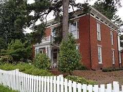Sutherland House, also known as the Sutherland-Hite House and Logan House, is a historic home located at Petersburg, Virginia. It was built between 1860 and 1862, and is a two-story, three bay, Italianate style brick dwelling. The house incorporates an 1838, one-story, former dwelling as a rear ell, and a frame addition built in 1877. The main house has a double-pile, central passage plan. The house features two unusual chimneys made up of clustered flues on a low-hipped slate roof, tripartite windows, and a Doric order portico at the entry. Also on the property is a contributing two-story, four room brick service building.[3]