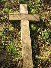 Wooden cross commemorating Evelyn Duke, wife of J. W. Smith Neill.