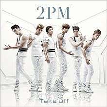 "Take Off" is the debut Japanese single by South Korean boy band, 2PM. This single was released on May 18, 2011 in 4 editions: CD+DVD, CD+Photobook, CD only limited and a Regular edition. The song was used as ending song theme for 12 episodes of the anime "Blue Exorcist". It peaked no. 4 in Oricon's Weekly singles chart with 59,059 sold in the first week.[1]