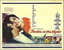 Tender Is the Night is a 1962 film directed by Henry King (his last film), based on the novel of the same name by F. Scott Fitzgerald. It stars Jennifer Jones and Jason Robards.
