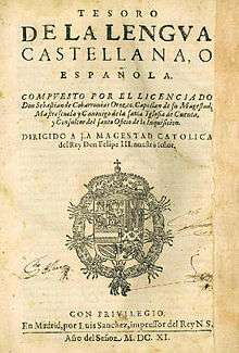 The Tesoro de la lengua castellana o española (Treasury of Castilian or Spanish Language) is a dictionary of the Spanish language, written by Sebastián de Covarrubias in 1611.