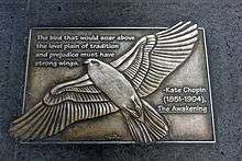 Kate Chopin plaque, New York City library walk: "The bird that would soar above the level plain of tradition and prejudice must have strong wings."