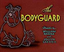 The Bodyguard is a 1944 American one-reel animated cartoon and is the 15th Tom and Jerry short directed by William Hanna and Joseph Barbera, produced by Fred Quimby and animated by Ken Muse, Ray Patterson, Irven Spence and Pete Burness. The cartoon features Spike the bulldog in his second role and the first time ever can able to speak. It was produced in Technicolor and released to theatres on July 22, 1944 by Metro-Goldwyn Mayer.