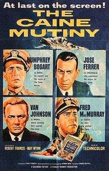 The Caine Mutiny is a 1954 American fictional Navy drama set in the Pacific during World War II. Directed by Edward Dmytryk and produced by Stanley Kramer, it stars Humphrey Bogart, José Ferrer, Van Johnson, and Fred MacMurray, and is based on The Caine Mutiny, the 1951 Pulitzer Prize-winning novel written by Herman Wouk. The film depicts the events on board a fictitious World War II U.S. Navy destroyer minesweeper and a subsequent mutiny court-martial.