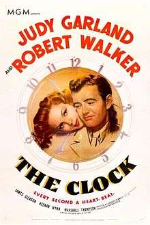 The Clock (UK title Under the Clock) is a 1945 American romantic drama film starring Judy Garland and Robert Walker and directed by Garland's future husband, Vincente Minnelli. This was Garland's first dramatic role, as well as her first starring vehicle in which she did not sing.
