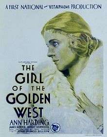 The Girl of the Golden West is a 1930 American Pre-Code drama film produced and distributed by First National Pictures, a subsidiary of Warner Bros., directed by John Francis Dillon and starring Broadway actress Ann Harding and James Rennie. Ann Harding's then-husband, Harry Bannister, plays the villain Jack Rance. David Belasco wrote, directed, and produced the original play in 1905 which starred Blanche Bates.