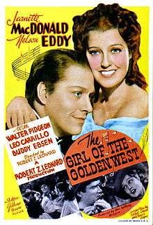 The Girl of the Golden West is a 1938 musical western film. It was adapted from the play of the same name by David Belasco, better known for providing the plot of the opera La fanciulla del West by Giacomo Puccini. A frontier woman falls in love with an outlaw.[3]