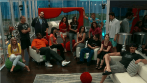 On Day 1, contestants moved into The Glass House. Holly and Robin were placed in the "enemies" room, while Erica and Andrea were placed in the "friends" room.[40] On Day 2, during the first live feed showing, contestants played a game in which they had to guess the answer to questions that the public were answering live. The questions were multiple choice, and varied from topics such as whether it is acceptable to have sex on the first date to what is the rudest thing a person could do during a first date. Other questions involved the contestants reactions to learning their child was gay, and how long should a couple date before getting married. To answer the questions, contestants had to go to either the "friends room", "enemies room", the bathroom, or the kitchen counter, with each room symbolizing a specific answer. The contestants were later asked to tell who they felt their biggest threat was, with Andrea and Kevin receiving the most votes from their fellow contestants. They later split into teams to compete in the first competition. The competition, titled "Twist and Shout", featured the contestants solving a puzzle built onto the wall based on information about their fellow contestants.[41] The contestants split into east vs. west to do the challenge, with the east team winning. Jacob was the captain of the west team, and therefore became the first contestant to be sent to limbo. The contestants had to choose whom to send to limbo with him later on.