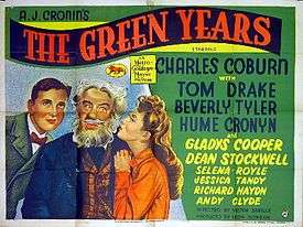 The Green Years is a 1946 American drama film featuring Charles Coburn, Tom Drake, Beverly Tyler and Hume Cronyn. It was adapted by Robert Ardrey from A. J. Cronin's novel of the same name. It tells the story of the coming-of-age of an Irish orphan in Scotland and was directed by Victor Saville.