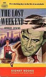 The Lost Weekend is Charles R. Jackson's first novel, published by Farrar & Rinehart in 1944. The story of a talented but alcoholic writer was praised for its powerful realism, closely reflecting the author’s own experience of alcoholism, from which he was temporarily cured. It served as the basis for a film adaptation by the same name in 1945.[1]