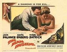 The Man Inside is a 1958 British crime adventure film brought to the screen by Warwick Film Productions. The screenplay from David Shaw was based on a novel by M.E.Chaber and was directed by John Gilling. The film was Bonar Colleano's last role before he died in a car accident.[1]