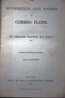 - Darwin, Charles (1875). On the Movements and Habits of Climbing Plants. John Murray, London.