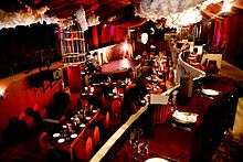 The venue consists of four bars, a Bedouin covered smoking deck, a VIP balcony stretching the length of the venue, a separate upstairs VIP section, and carousel-style booths with wine-colored cushions that run along the main dance floor. The seating is also walled in with mirrors, so expect to feel as in you’re in a fun house.[1]