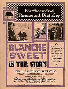 The Storm is a 1916 American silent drama film directed by Frank Reicher and starring Blanche Sweet and Thomas Meighan. Beatrice deMille and Leighton Osmun provided the story and scenario for the film.[1] It is not known whether the film currently survives.[1]