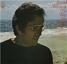 The Way We Were is an album by American pop singer Andy Williams that was released in the spring of 1974 by Columbia Records. This was his first studio album out of 25 released by Columbia that didn't make either the Billboard 200 or Christmas Albums charts, but it did reach number seven in the UK during a 10-week run that began on June 15 of that year.[5] The UK release featured a different cover photo, but the track listing for both versions was the same. On December 1, 1974, the British Phonographic Industry awarded the album with Silver certification for sales of 60,000 units in the UK.[6]