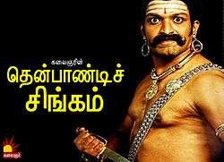 Thenpandi Singam is a Tamil-language historical drama that airs on Kalaignar TV. The show premiered on 15 September 2016 on Monday to Friday at 8:30PM IST. The show has been created and written by author and screenwriter Karunanidhi.[1] Thenpandi Singam is based on true story of the life of The Marudhu brothers (Maruthu Pandiyar).[2]