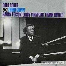 Third Down is the third album led by pianist Dolo Coker which was recorded in 1977 and released on the Xanadu label in 1979.[1][2][3]