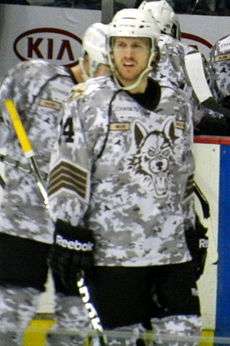 Miller playing for the Chicago Wolves during a military appreciation night in 2013 | |||