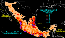 - 1 2 3 4 Pasch, Richard (July 29, 1999). "Tropical Depression Two Tropical Cyclone Report". National Hurricane Center. Retrieved April 27, 2010.