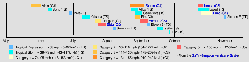 Hurricane Huko (2002) Hurricane Kenna Hurricane Hernan (2002) Hurricane Fausto(2002) Hurricane Elida (2002) Saffir–Simpson Hurricane Scale