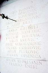The Tomb of the People's Heroes (Croatian: Grobnica narodnih heroja) is located in Zagreb's central graveyard, Mirogoj. It was designed by the Croatian sculptor Đuro Kavurić and built in 1968. Buried in the tomb are not only the recipients of the Order of the People's Hero, but also some of the most notable workers' movement activists of Croatia and Yugoslavia.[1]