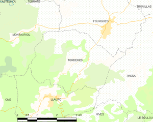 Tordères is located in the canton of Thuir and in the arrondissement of Perpignan.