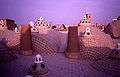 Iran's old city fabric is composed of narrow winding streets called koocheh with high walls of adobe and brick, often roofed at various intervals. This form of urban design, which used to be commonplace in Iran, is an optimal form of desert architecture that minimizes desert expansion and the effects of dust storms. It also maximizes daytime shades, and insulates the “fabric” from severe winter temperatures.